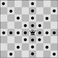 3.4. Dāma var iet uz jebkuru lauciņu pa vertikāli, horizontāli vai diagonāli, uz kurām viņa atrodas.