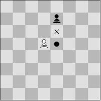 Е10. Ja divi bandinieki var paņemt vienu un to pašu figūru vai partnera bandinieku, - bandinieku, kurš iet, apzīmē: